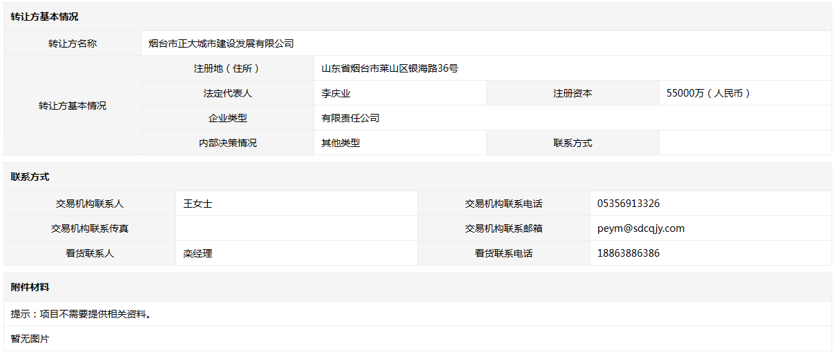 轉(zhuǎn)讓方:煙臺市正大城市建設(shè)發(fā)展有限公司