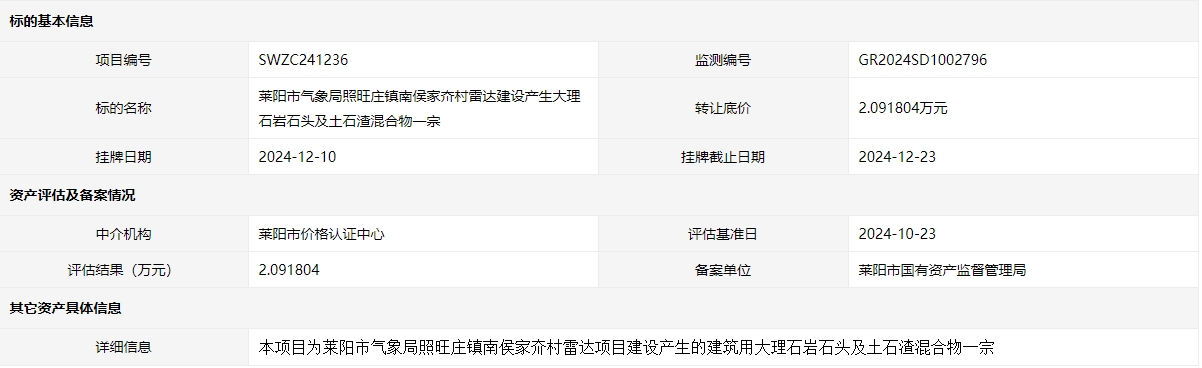 萊陽市氣象局照旺莊鎮(zhèn)南侯家夼村雷達(dá)建設(shè)產(chǎn)生大理石巖石頭及土石渣混合物一宗