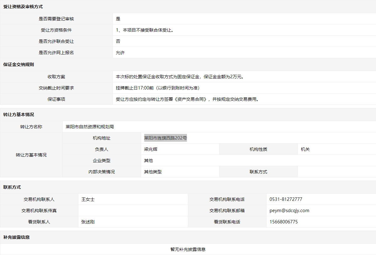 - 轉(zhuǎn)讓方:萊陽市自然資源和規(guī)劃局