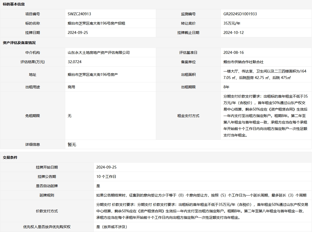 掛牌起止日期:2024年9月25日至2024年10月12日